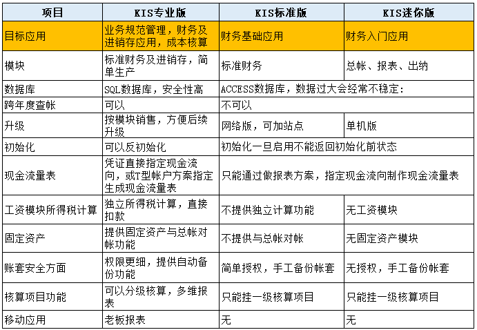 [点晴模切ERP]金蝶KIS系统各个版本(迷你版/标准版/专业版/商贸版/旗舰版)的区别