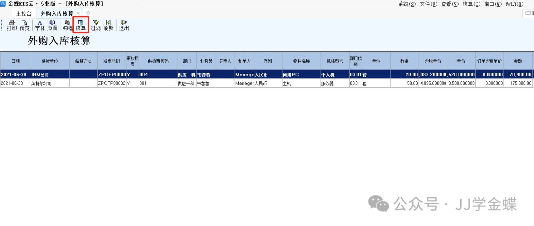 - 核算前提:本期生成的采购发票已审核并且与采购入库单钩稽。 - 核算步骤:单击“外购入库核算”,弹出过滤窗口,设定过滤条件后点击“确定”;打开外购核算界面后,点击“核算”,系统会自动核算过滤出来的单据物料的成本,并提示核算成功。核算以后系统会根据暂估差额生成方式设置的单到冲回或者差额调整自动处理。