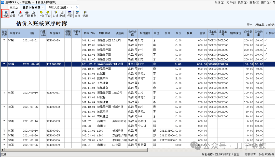 2.1.2 估价入库核算 - 操作路径:存货核算 --- 估价入库核算