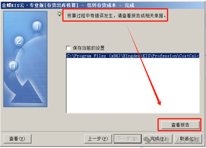 - 继续点击“下一步”,设置写结转报告选项,物料比较多的情况下建议勾选“只写结转有误的存货”。