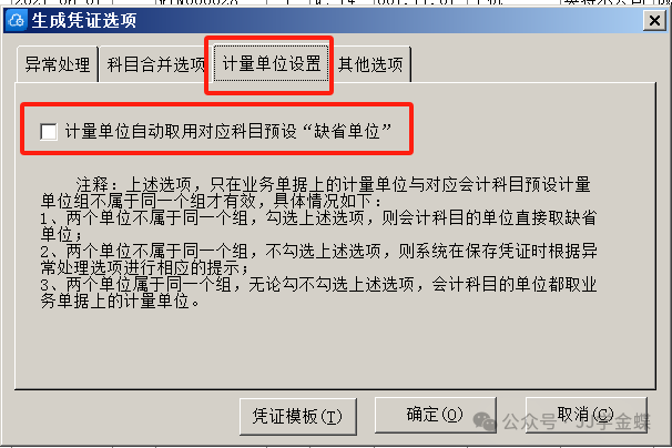 - 生成失败处理:在生成凭证时,若出现失败的情况,可查看报告。选项中有生成凭证的一些设置,可以设置生成凭证出错时的处理方法以及合并生成凭证的依据。