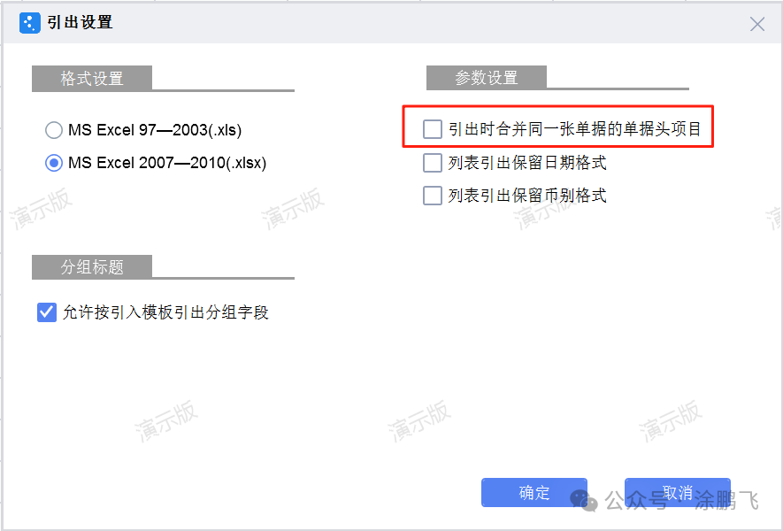 我个人在导入数据的时候是比较喜欢进行单据头完全填充的。 引出格式设置