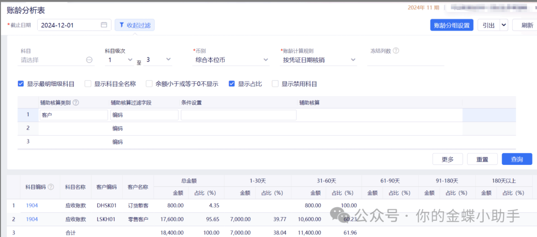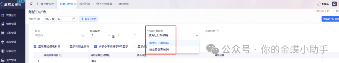 [点晴模切ERP]金蝶云星辰~财务账龄分析表的使用