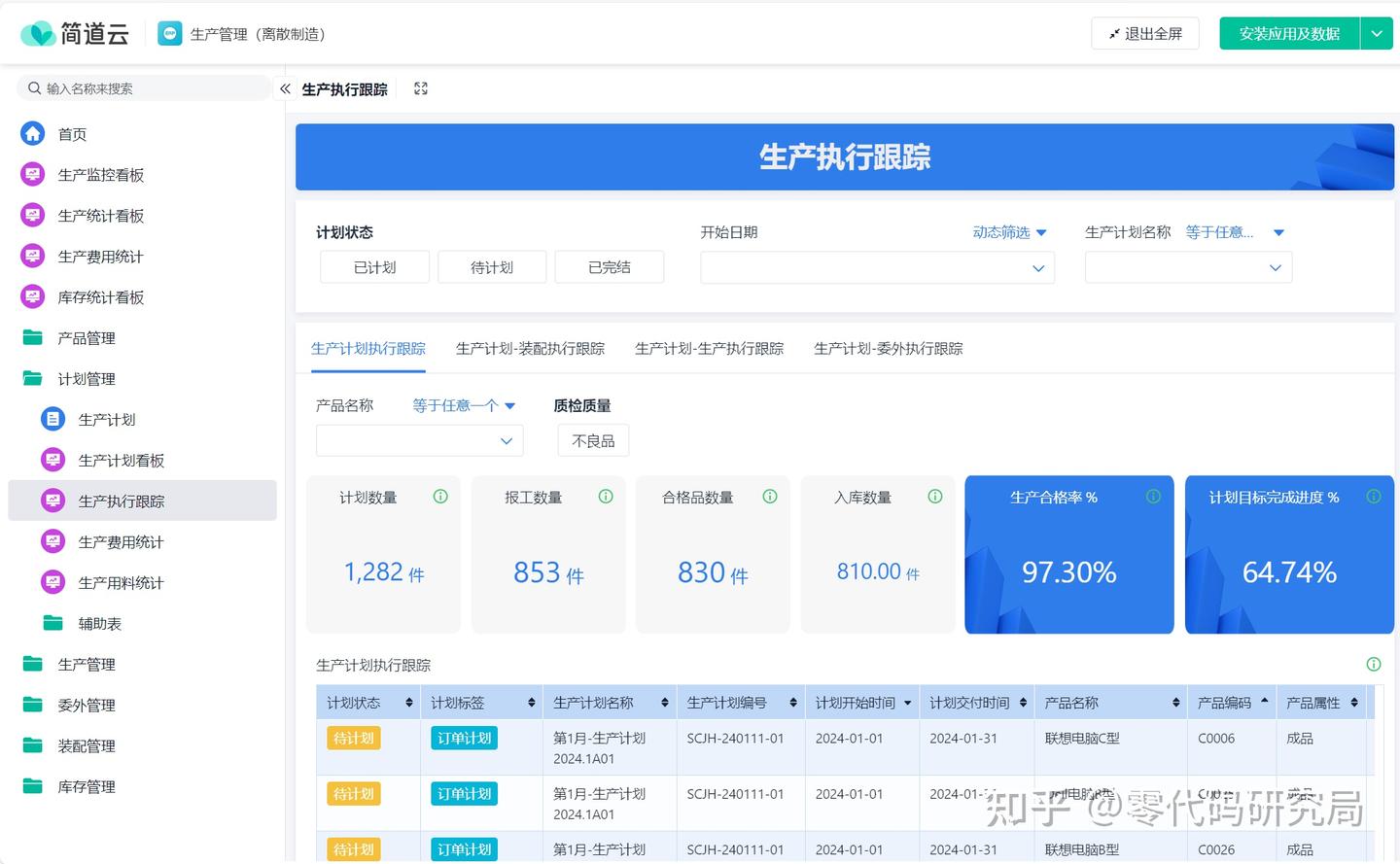 ![]() (2)计划管理 计划管理是指对生产进行规划、监控和协调的管理过程,包括生产计划制定、人员分配和进度监控等内容,以确保生产计划能够按时、按量、按质地执行。