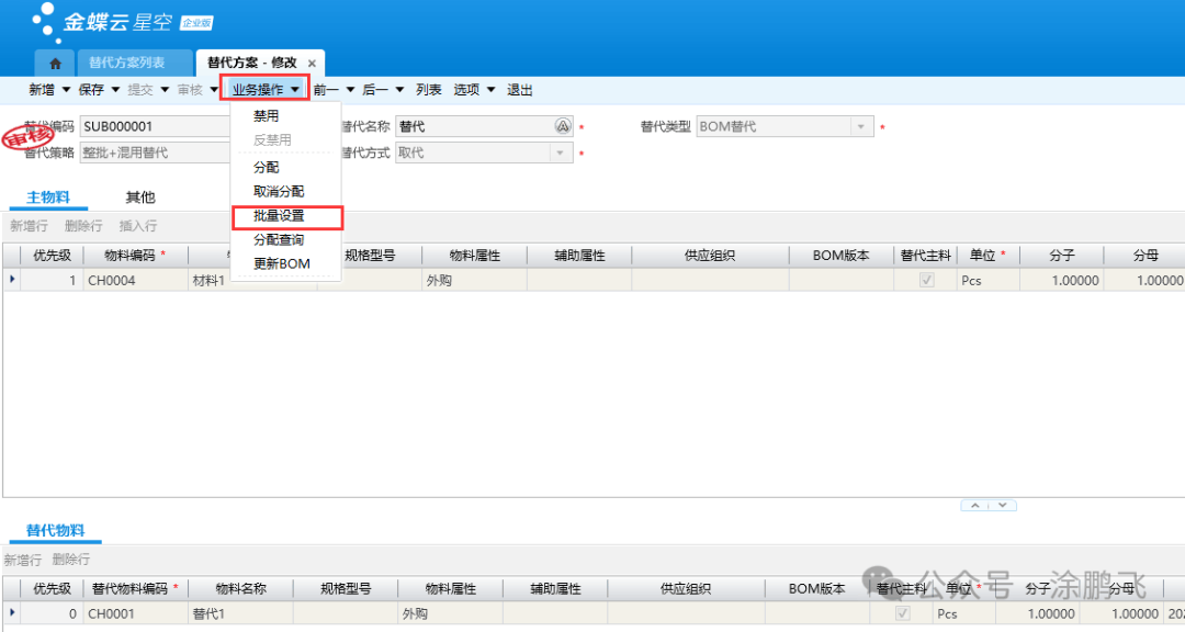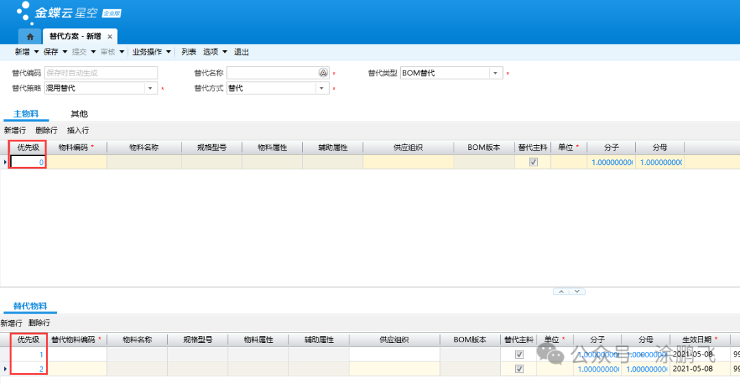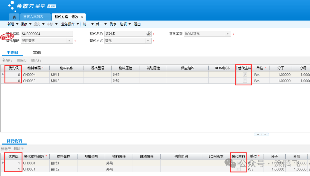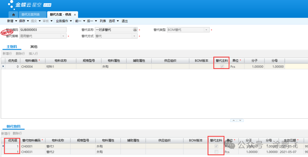 [点晴模切ERP]金蝶云星空:物料替代方案的设置、底层逻辑、案例分析