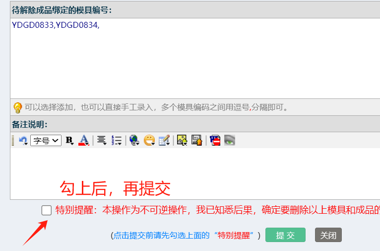 点晴模切ERP-批量解除绑定成品的模具-操作流程