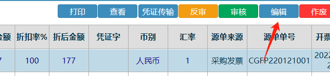:点晴FMS-编辑付款单-操作流程![]() 点击进入 如下图: 点中一条背景变色后,再点击编辑按钮 如下图: 后面跟新增一样的操作,可以修改表头的信息 如下图: