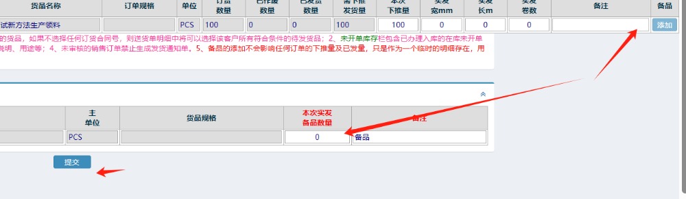 :点晴ERP-新增送货单时添加备品的特别说明![]()