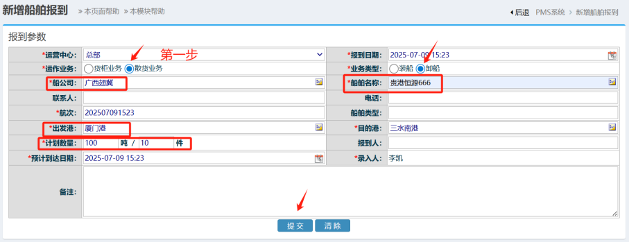 [点晴模切ERP]点晴PMS-新增散货船舶报到单-操作流程