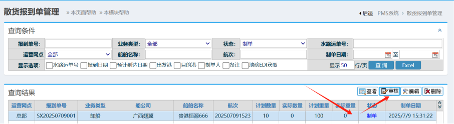 [点晴模切ERP]点晴PMS-审核散货船舶报到单-操作流程