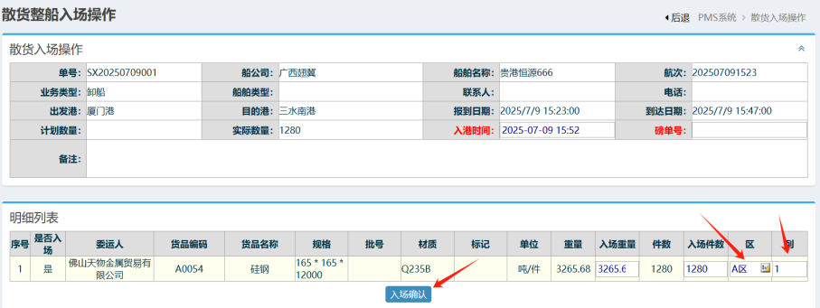 [点晴模切ERP]点晴PMS-散货卸船入场-操作流程