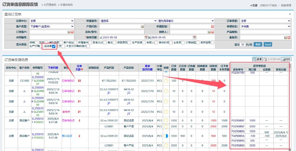 【点晴模切ERP】如何查看销售订单的详细出货情况:物料代码、发货时间、送货数量等?
