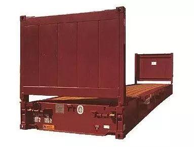 ![]() 框架集装箱(flat rack container)没有箱顶和两侧,其特点是从集装箱侧面进行装卸。以超重货物为主要运载对象,还便于装载牲畜,以及诸如钢材之类可以免除外包装的裸装货。还可以便于大型超宽,超高货物的吊装。 7、平板集装箱![]() 平板集装箱(platform container)形状类似铁路平板车,是具有高承载能力的底板而且没有上部结构的集装箱。适宜装超重超长货物,长度可达6米以上,宽4米以上,高4.5米左右,重量可达40公吨。且两台平台集装箱可以联结起来,装80公吨的货,用这种箱子装运汽车极为方便。 8、开顶集装箱