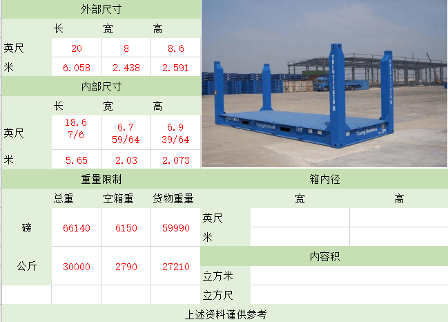 照片名称:20'FR(Flat Rack角柱式折迭平板) 备注:大型机械、游艇、锅炉等