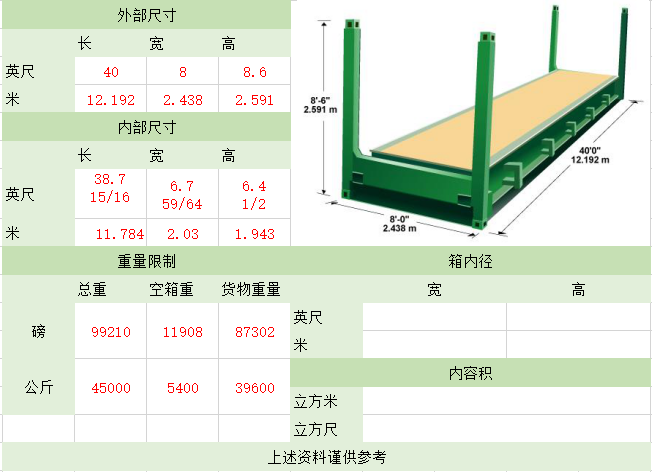 照片名称:40'FR(Flat Rack角柱式折迭平板)