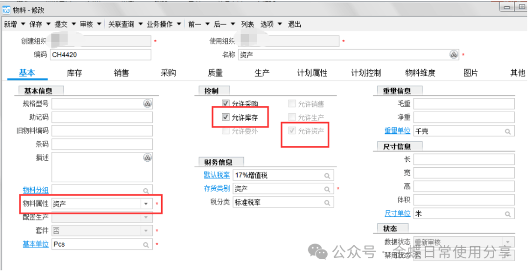 2业务数据2.1创建物料【业务场景】:企业用户资产物料的建立 【用户角色】:管理会计 【功能菜单】:【基础资料】->【主数据】->【物料】 【操作说明】:注:只有物料属性为资产的物料才能做资产申请单。 系统默认资产物料不入库,如果客户实际业务需要入库,那么在新建资产物料时一定要允许库存。