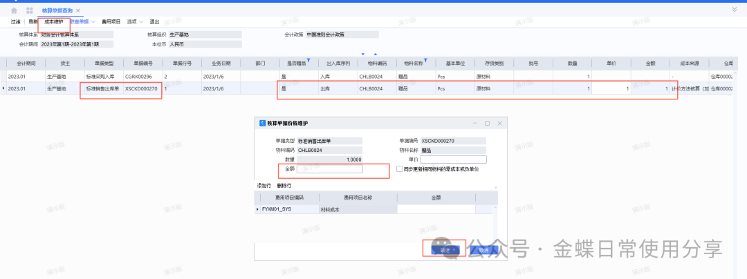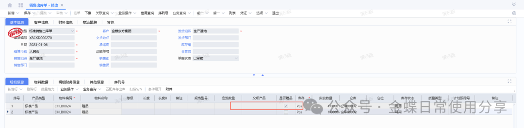[点晴模切ERP]金蝶云星空赠品业务流程及成本核算逻辑