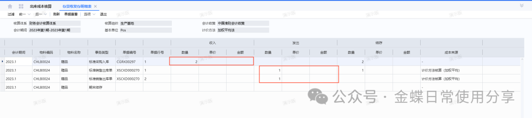 存货核算后,因为采购入库赠品没有成本,所以销售出库单也无法核算出成本,核算结果如下: