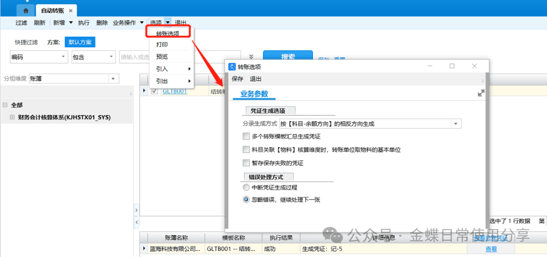 6.生成转账凭证时,系统支持将多个模板依次生成并汇总到一张凭证,或者多个模板一次执行生成多张凭证;对于转账金额为负数的分录,系统支持选择是否按科目余额相反方向生成 ;