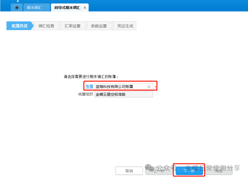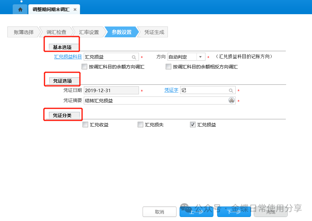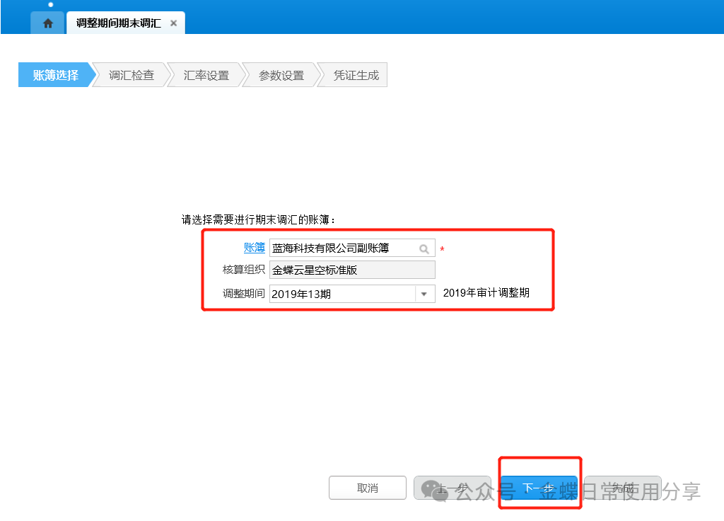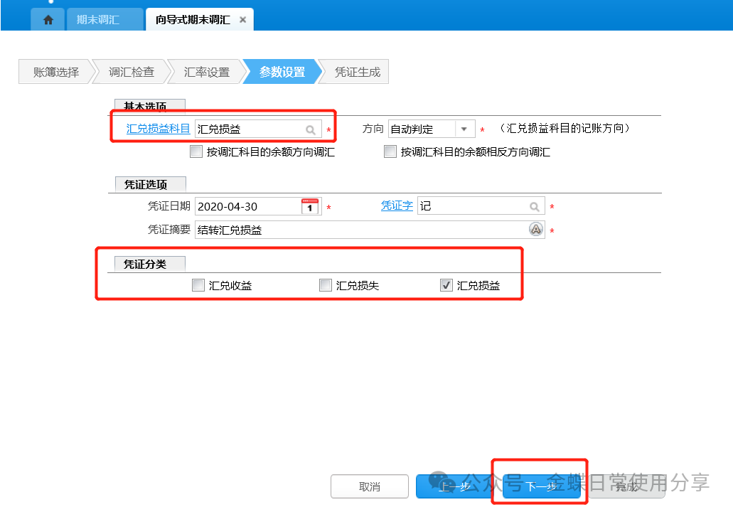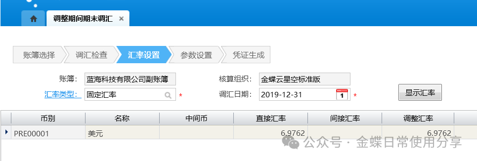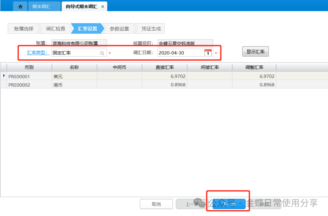 3.汇率设置:选择汇率类型及调汇日期;确认无误后点击“下一步”;