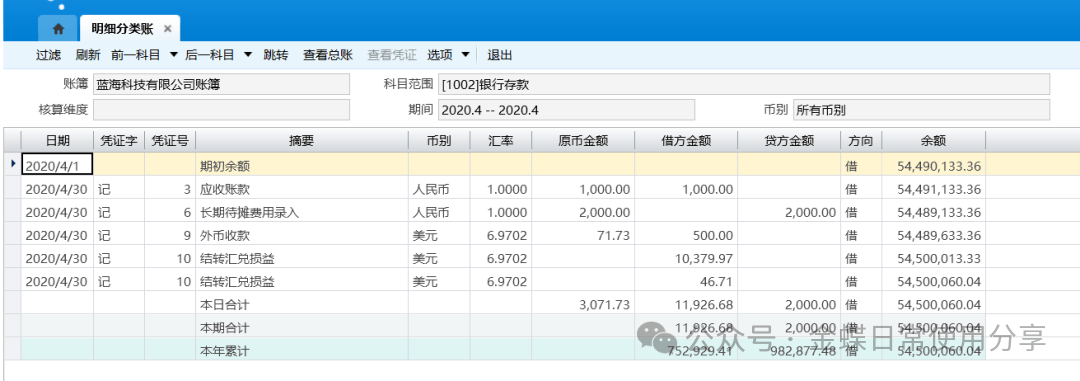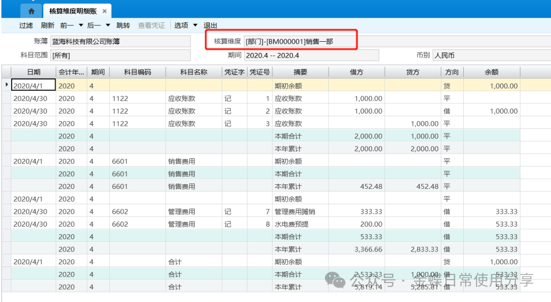 6.2明细分类账【业务场景】:系统提供明细分类账查询功能用于查询各科目的明细分类账账务数据,可以按照各种币别或者某一币别查询明细账;还提供了按非明细科目输出明细分类账的功能;同时,用户还可以查询核算维度的科目明细账。 【用户角色】:总账会计 【功能菜单】:【财务会计】->【总账】->【账簿】->【明细分类账】 【操作说明】: 1.系统支持财务账证表一体化查询,用户选择需要联查的明细分类账记录,然后点击菜单的【查看总账】按钮,即可调出对应记录的总分类账信息。用户还可以通过【查看凭证】菜单查看明细分类账记录对应的凭证; 2.系统在显示科目的对方科目信息时,如果凭证分录中存在红字负数金额,系统在判断对方科目前,先将红字负数金额转换为相反方向的正数金额。对于多借多贷的凭证,系统根据科目的金额优先匹配原则确认对方科目;