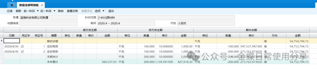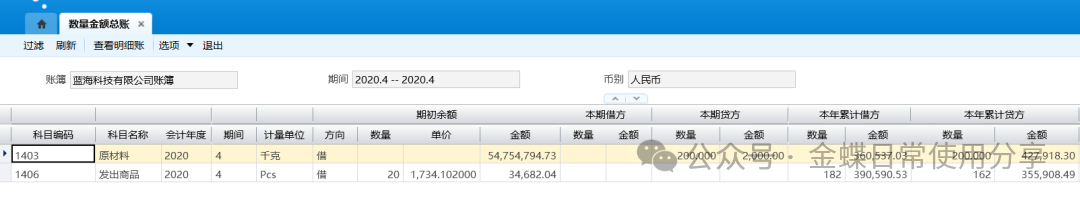 6.5数量金额总账【业务场景】:数量金额总账用于查询设置为数量金额核算科目的“期初结存”、“本期收入”、“本期发出”、“本年累计收入”、“本年累计发出”以及“期末结存”的数量及单价、金额数据。 【用户角色】:总账会计 【功能菜单】:【财务会计】->【总账】->【账簿】->【数量金额总账】 【操作说明】:查询数量金额总账