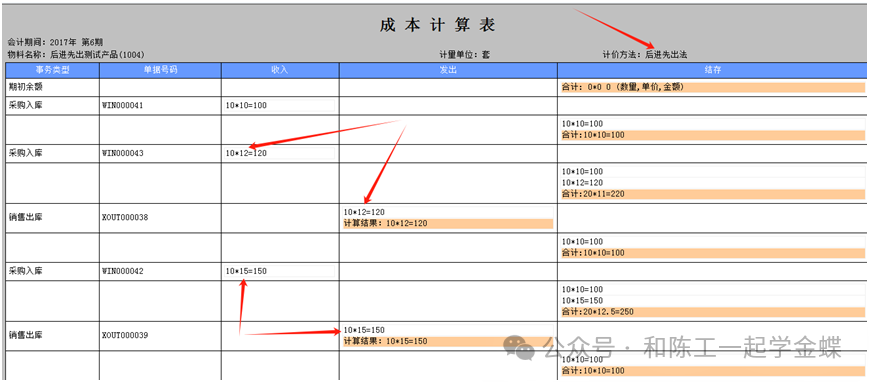 4.后进先出法 4.1 计算方式:出库成本单价=按单据日期的最后入库的先发出 4.2 计算结果:5号的出库成本取2号的入库成本12块 15号的出库成本取10号的入库成本15块
