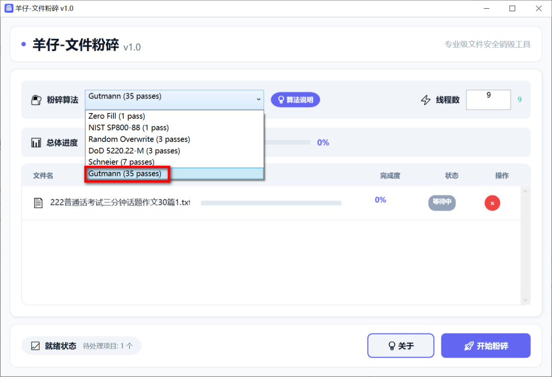 当我们电脑上有很重要的隐私文件想要删除,很多人是直接右键删除,然后清空回收站,以为这样就万事大吉了,其实利用一些恢复工具是可以重新找回的。 因此如果你比如有电脑想要出售,就必须将这些隐私文件扼杀在摇篮里,这样就必须用到一些专业的文件粉碎工具,这期小七就安利一款。 羊仔文件粉碎(电脑) 这是一款专业级的文件安全销毁工具,基于WPF技术开发,完全免费,大小仅2.65MB,单文件免安装。使用前必须再次确认文件,否则删除就彻底无法找回。 ![]() 提供6种粉碎算法,日常使用选择DoD就够了,如果你有隐私焦虑,就选择Gutmann,开始粉碎前后悔了,可以点击移除项取消。 六大“酷刑”,神仙难救:内置了6种经典的文件粉碎算法,你可以把它们想象成不同的“酷刑”: