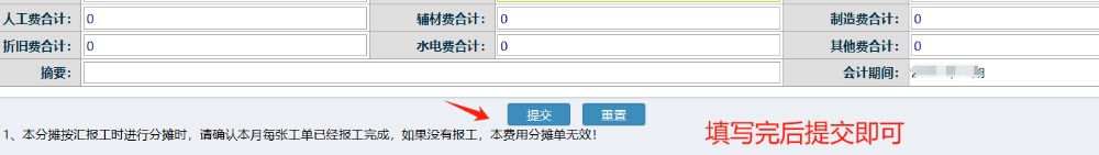 选择分摊类型:按标准工时 如下图: 填写金额后,点击提交即可 如下图: