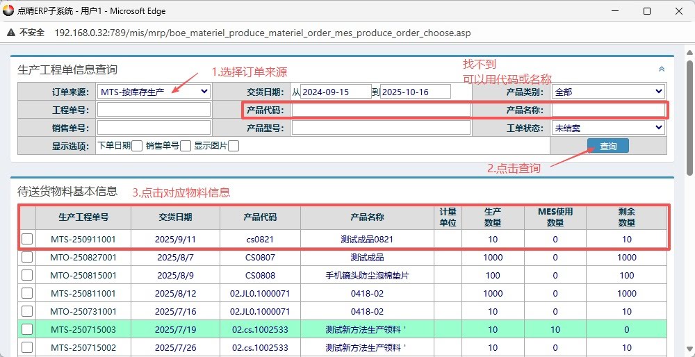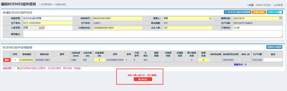 点晴模切ERP-BOE关于MES组件使用单流程