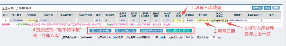 5.提交之后,回到左侧功能菜单里找到“返退品生产入库管理”