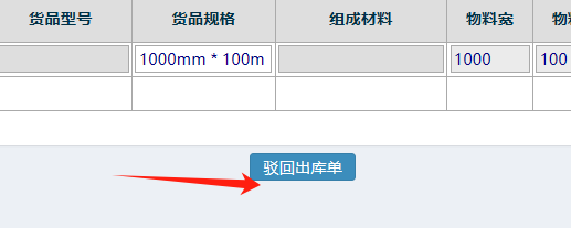 点击驳回出库单按钮 如下图:
