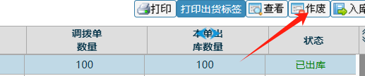 :点晴ERP-调拨出库单-驳回操作![]() 点击进入 如下图; 点击一条信息后,背景变色后,点击作废按钮 如下图:
