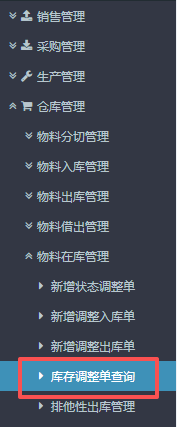 :点晴ERP-BOE返退_自主重工转换流程![]() 本教程是针对BOE成品返退流程中返退来源为“自主重工”,需要进行物料状态调整。 注:如果是正常BOE返退品的话可直接到最下方的“BOE返退品流程”! 1.进入ERP系统之后,在左侧的功能菜单里找到“仓库管理”,点开“物料在库管理”,点击“新增物料状态调整单”。