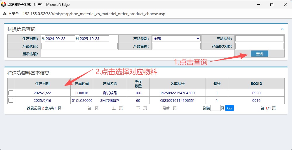 流程结束。 注:材损原材转换完后,接下来回到正常的送货流程: 点晴ERP-BOE成品送货单流程 点晴模切ERP更多信息:https://moqie.clicksun.cn,联系电话:4001861886 该文章在 2025/10/20 10:32:25 编辑过 |