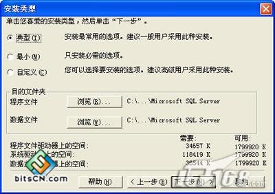 系统需求 这里以其四合一版本为例,以下安装过程同理。Microsoft SQL Server 2000 可在运行 Intel或兼容的 Pentium、Pentium Pro 或 Pentium II 处理器的计算机上运作。处理器必须以最低 166 MHz 的速度运行。需要 Internet Explorer 5.0 或更高版本。另外在在内存方面有如下要求: 企业版 最低 64 MB,推荐使用 128 MB 标准版 最低 64 MB 个人版 在 Windows 2000 上需要 64 MB,在所有其它操作系统上需要 32 MB 开发版 最低 64 MB 安装过程 第一步:将Microsoft SQL Server 2000安装光盘放入光驱中,安装程序会自动运行出现版本选择界面,我们以选择个人版为例。如下图: ![]() 图1 版本选择 点击看大图 第二步:在接下来的界面中选择“安装SQL Server 2000组件”选项。如下图: ![]() 图2 选择安装组件 点击看大图 第三步:接着选择“选择安装数据库服务器”。如下图: ![]() 图3 选择安装数据库服务器 点击看大图 第四步:稍后才开始出现安装向导,点击“下一步”后出现“计算机名”窗口。“本地计算机”是默认选项,其名称就显示在上面,我们按其默认点“下一步”。如下图: ![]() 图4 确定计算机名 点击看大图 第五步:接下来,在“安装选择”对话窗口中,同样按其默认项“创建新的SQL Server实例,或安装客户端工具”点下一步。 ![]() 图5 安装选择 点击看大图 第六步:接下来的窗口是用户名、公司名的自取,在经过软件许可协议一步后,到达“安装定义”对话窗口(如下图)。同样地,按其默认“服务器和客户端工具”选择到下一步。 ![]() 图6 安装定义 点击看大图 第七步:在“实例名”窗口中,系统一般提供了默认的复选框,我们既可以安装默认方式的实例,也可以自定义。 ![]() 图7 实例名 点击看大图 第八步:在安装类型对话窗口中,可以设定多个选项。比如安装组件的多少,以及安装的路径等,请根据实际需要选择。 ![]() 图8 安装类型 点击看大图 第九步:在“服务帐户”对话窗口中,一般接受默认的选项。然后输入你的域的密码即可。 ![]() 图9 服务帐户 点击看大图 【小提示】:如果选择指定服务器所用的帐号就需要指定一个用户、口令和域名。 第十步:在“身份验证模式”窗口里,如果你的操作系统是windowsNT以上,选择“Windows身份验证模式”即可,如果操作系统是windows9X,就建议选择“混合模式”。并且为此设定访问密码。 ![]() 图10 身份验证模式 点击看大图 第十一步:一切设定OK后,安装程序开始向硬盘复制必要的文件,开始正式安装。 ![]() 图11 开始安装 点击看大图 几分钟后,安装完成。依次单击“开始”—“程序”,即可看到Microsoft SQL Server 2000的程序组件(如下图)。 ![]() 图12 Microsoft SQL Server 2000 程序组件 点击看大图 关于Microsoft SQL Server 2000的卸载 可以用程序自带的删除程序以及控制面板两种方式进行。另外,每个命名的Microsoft SQL Server 2000实例必须单独删除,不能删除SQL Server 2000的个别组件。若要删除组件,必须删除整个实例。 另外,在删除SQL Server 2000之前,请退出所有有关的应用程序,包括Windows的事件查看器、注册表编辑器和所有的SQL Server 2000应用程序以及所有依赖于SQL的应用程序。 该文章在 2012/7/20 14:25:39 编辑过 |