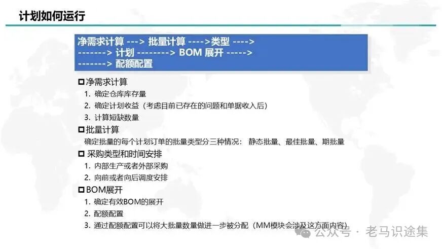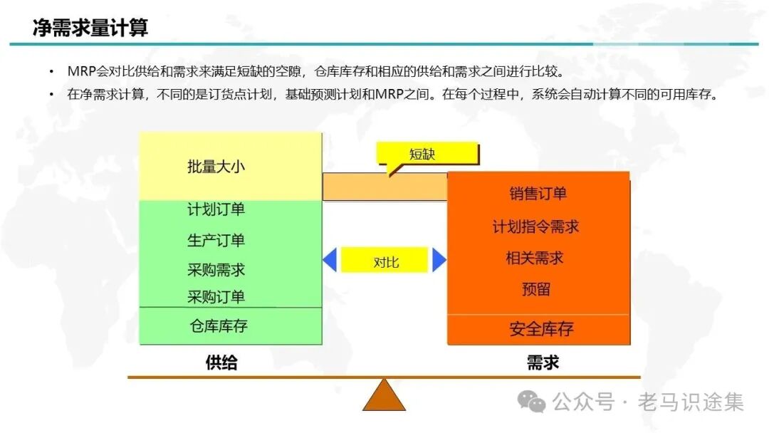 温过而知新,本次学习过程中,将掌握了一个新的知识点:需求与供给Pegging Relationships,可以追溯需求的来源。MRP运算还真是个挺复杂的计算过程,应该是ERP里最最复杂的计算过程之一,主要分为5个步骤,分别是:1净需求计算->2批量计算->3获取采购类型->4时间排程->5BOM展开。详细内容如下: