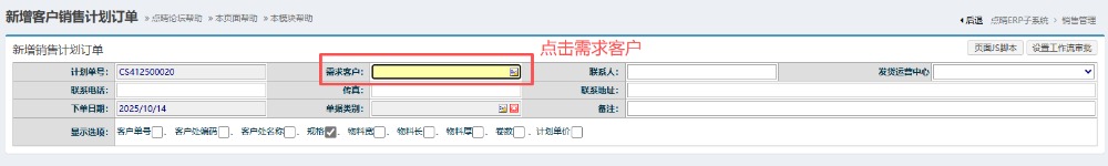 接下来跳转到新页面,点击选择需求客户,在弹出窗口选择客户。
