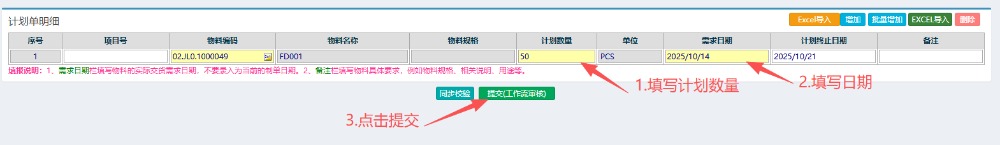 5.选好物料后,填写计划数量和日期,最后点击提交。 ![]() 点晴模切ERP更多信息:https://moqie.clicksun.cn,联系电话:4001861886 该文章在 2025/10/14 17:02:59 编辑过 |
