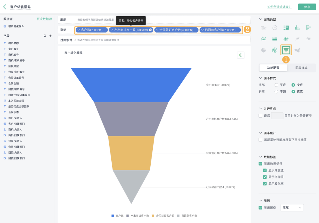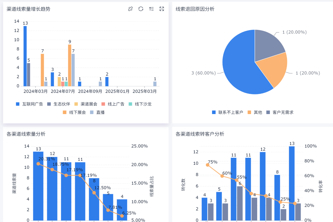 那如果你下个月要成交20单,你就能反推出: 至少需要进入漏斗的线索 = 20 ÷ (40%×25%×10%) = 2000 条。 这就不是拍脑袋,而是有理有据的业绩规划。 ![]() 2. 可诊断:哪层掉的最多,问题就在哪 每个阶段的转化率都能暴露问题: