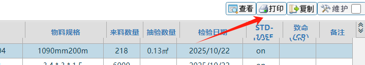 点中一条后背景变色后,点击打印按钮 如下图: