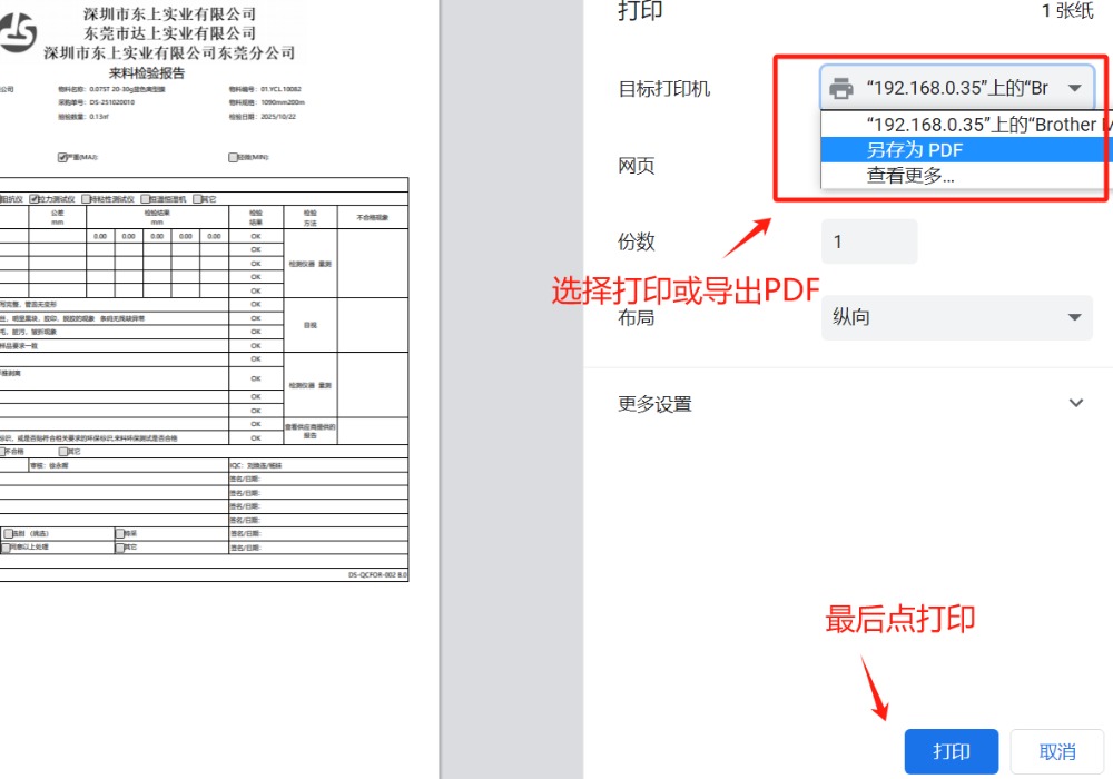 然后选择对应的打印机选项,可以选打印机打印出来,或者导出PDF 如下图: ![]() 点晴模切ERP更多信息:https://moqie.clicksun.cn,联系电话:4001861886 该文章在 2025/10/29 17:50:17 编辑过 |