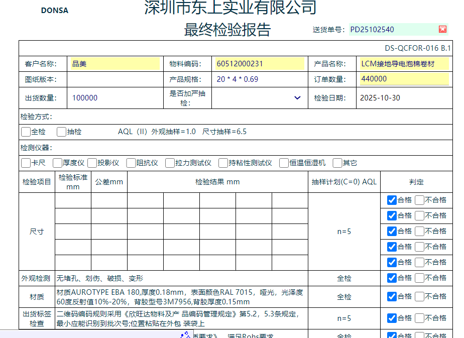 :点晴ERP-新增出货品检报告-操作步骤![]() 点击进入 如下图: