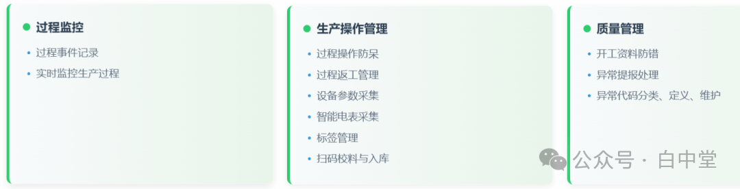 工单管理让管理者能够实时查看工单计划和进度,通过开工校验确保所有资源准备就绪,避免延误。 工艺管理实现了无纸化作业,操作人员可以通过电子设备随时查看工艺卡和作业指导书。这些数据与企业的ERP/PLM系统实时同步,确保工艺标准的准确性和一致性。 物料管理通过系统集成,实现了物料需求的自动计算和缺料预警,特别是线边仓管理功能,能够在物料不足时自动触发叫料流程,大大减少了因缺料导致的停产时间。 3. 生产执行阶段:精细管控保质量
