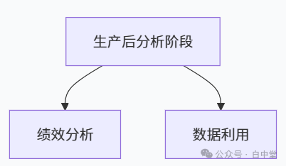 再进一步可按照颜色块和功能布局,把生产过程分为四大阶段,N个控制点。白中堂命名为:基础数据管理、生产准备、生产执行、产后分析。一、生产过程的四个核心阶段1. 基础数据管理阶段:打好生产管理的地基