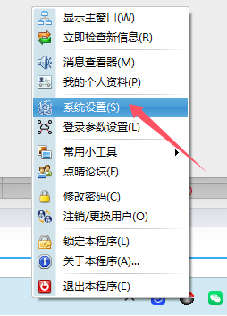 鼠标右键点击Windows系统右下角“点晴MIS信息通”图标,选择“系统设置”: