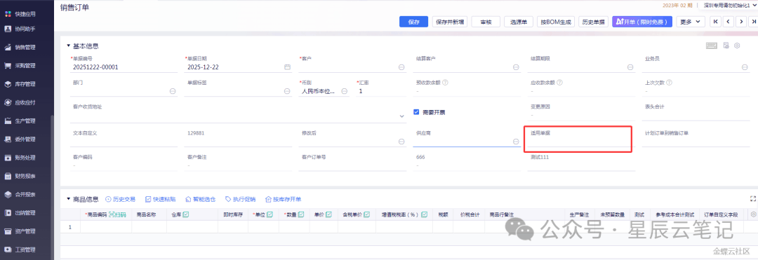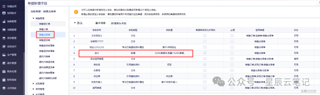 [点晴模切ERP]金蝶云·星辰单据新增字段常见问题
