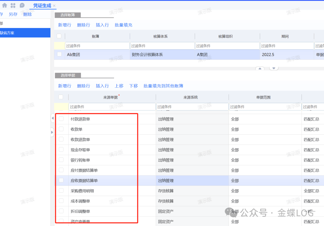 点进来可以看到,不管是应付还是出纳或者存货模块的单据在这里都可以勾选。 这样就不用去每个模块里面一个个打开生成单据了。