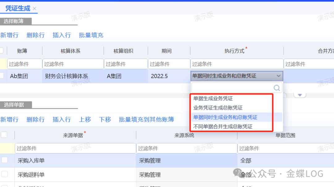 上面有提到业务凭证和总账凭证,那么它们有什么区别? 这里简单讲一下它们的主要区别:就是业务凭证和单据是一对一的,而总账凭证是可能是多张业务凭证汇总生成的。 所以平时非存货的单据可以先生成业务凭证确认无误,到月头结账的时候再统一将业务凭证汇总生成总账凭证。