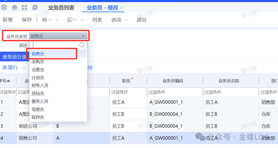 [点晴模切ERP]金蝶云星空如何新增销售员、采购员、仓管员等业务员信息?